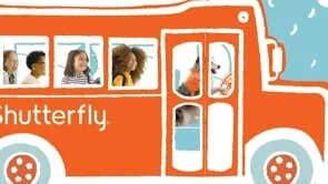 The video was shot based around a cutout of a Shutterfly school bus with the kids jumping out the bus door to showcase their unique Shutterfly Back to School product. The bus driver was a dog.